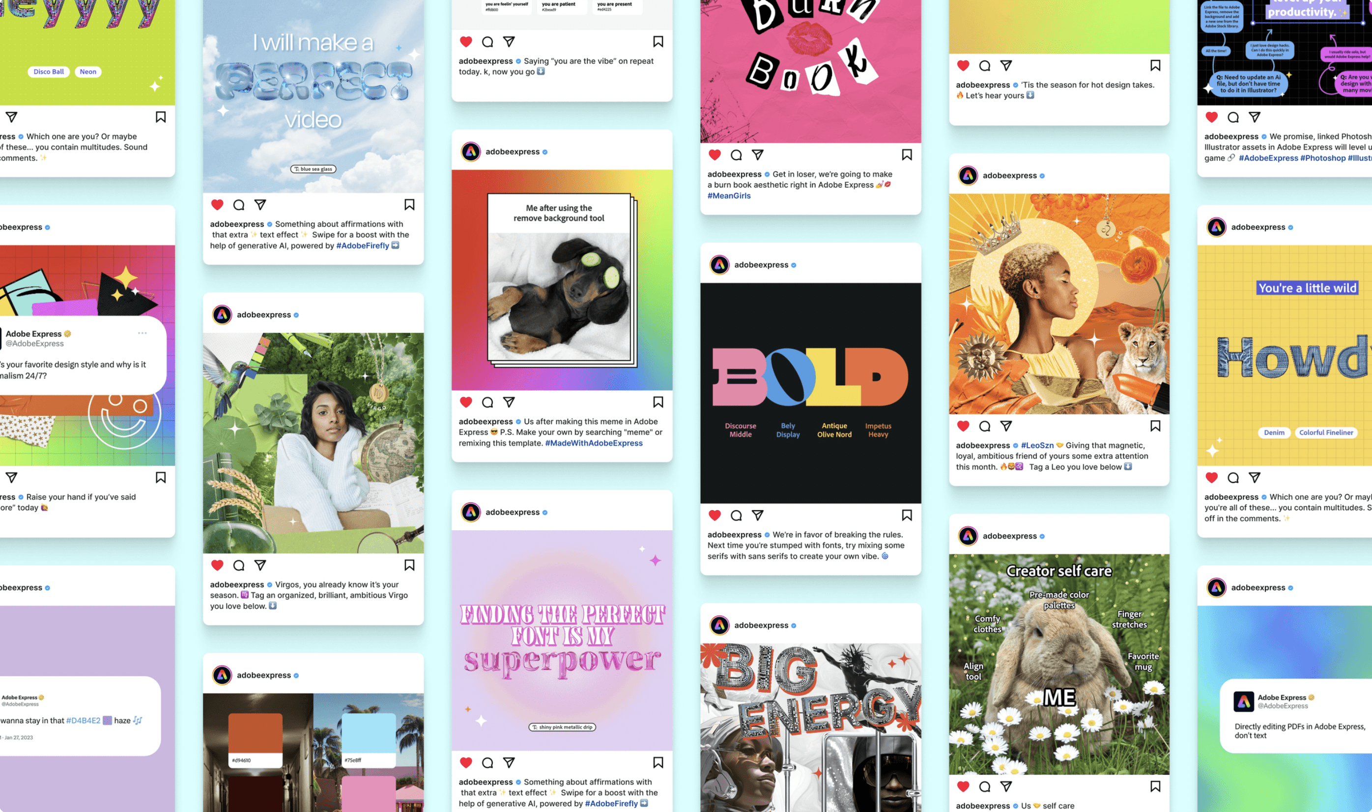 Adobe Express was in need of a social brand refresh and new strategy to stand out against competitors. Adobe is a giant in the professional space, but needed a way to speak to the everyday DIY designer and small businesses who might not need or want to invest in the full Creative Cloud. The program is free-to-use with powerful static and video capabilities, especially given it's a primarily browser-based program (although we did help launch the mobile app version).