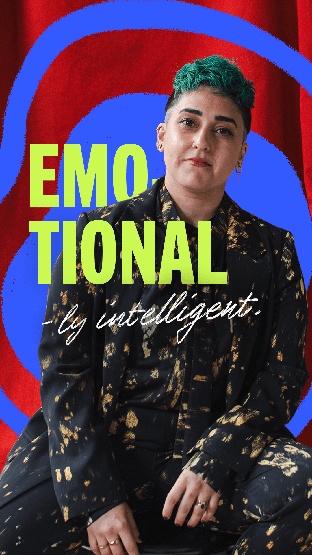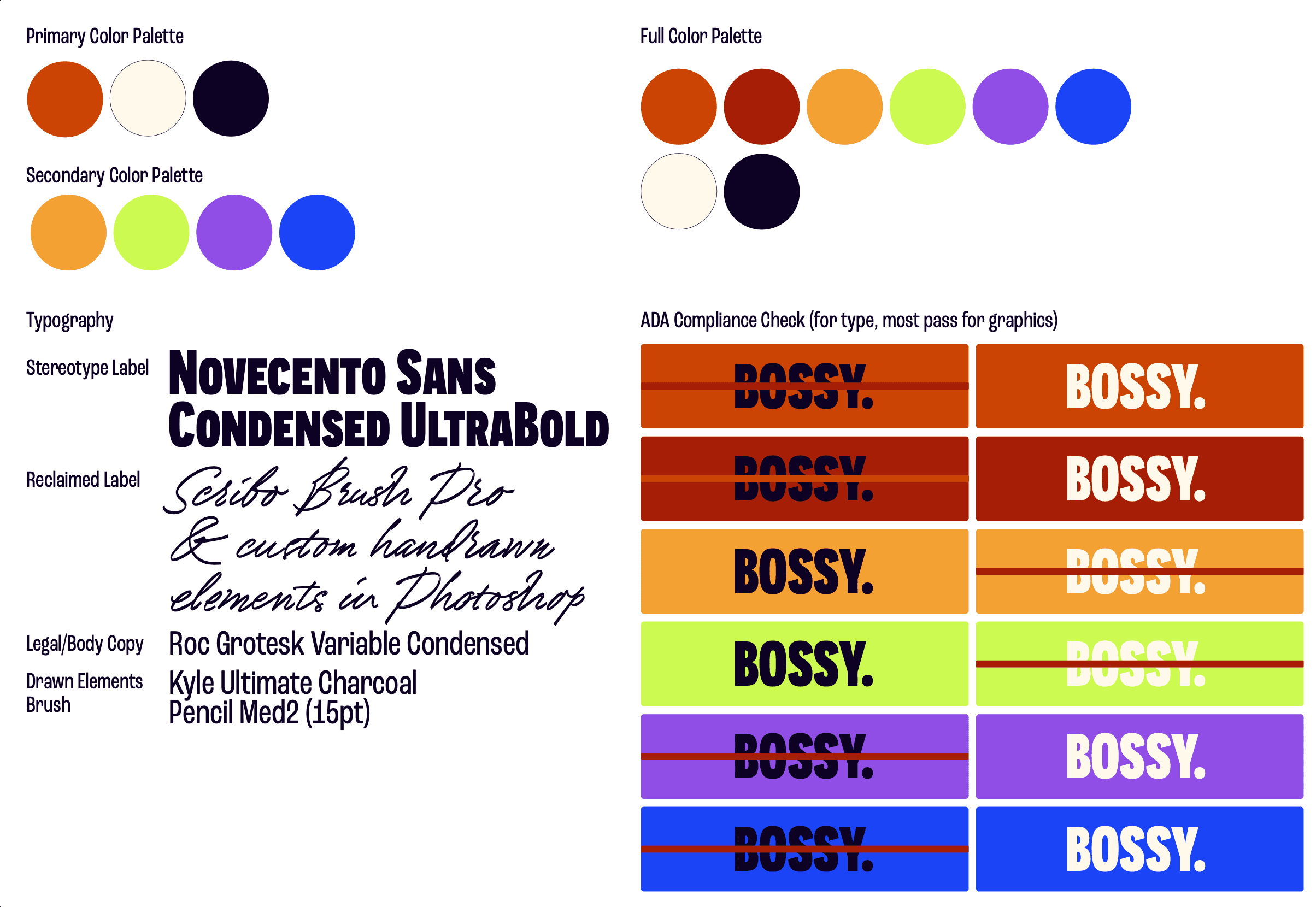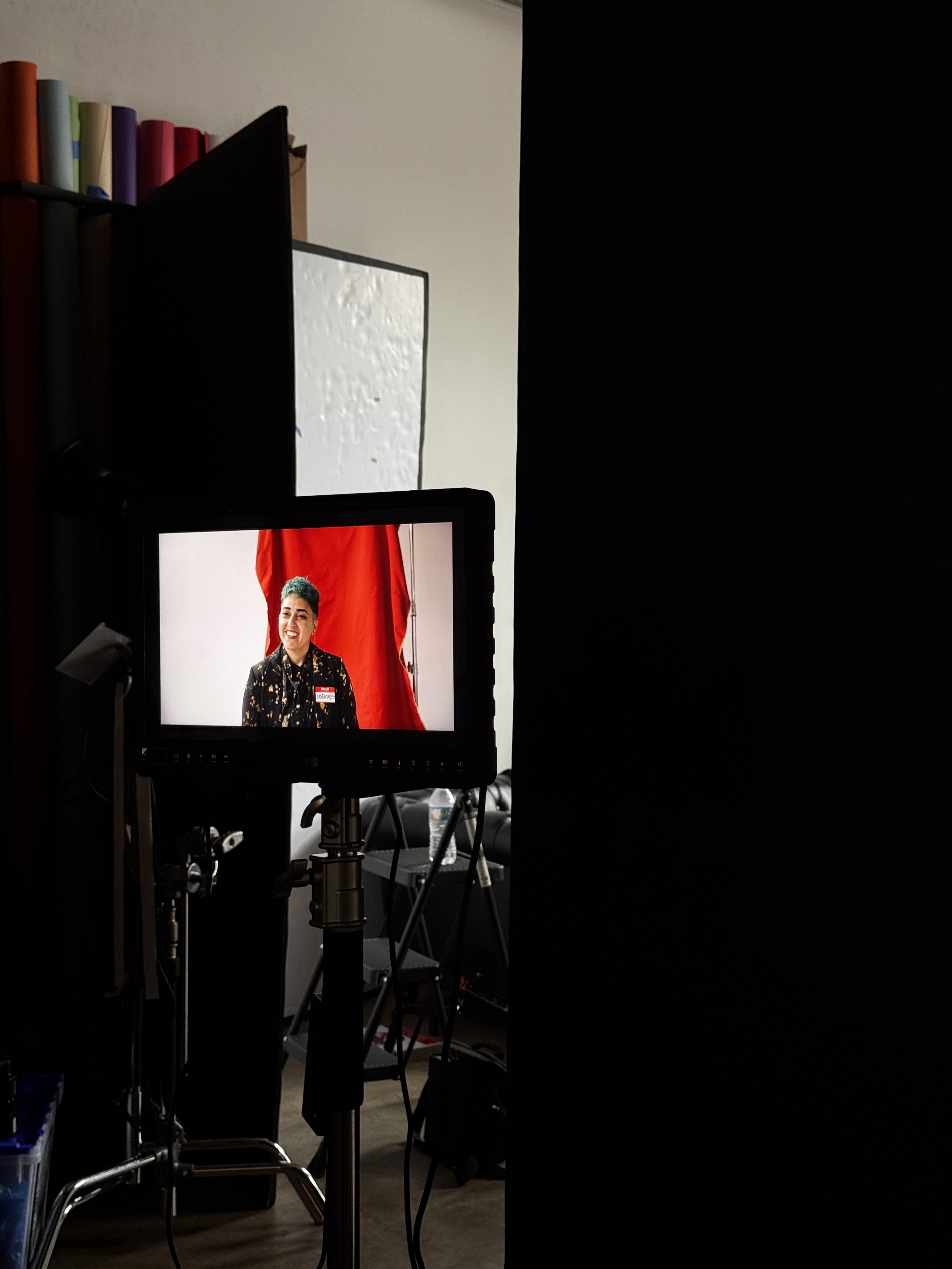 (There was a minor shift since the physical set and wardrobe took on the look of the primary colors after sourcing materials, and so the secondary colors took over when it came to the later added type/graphical elements.)