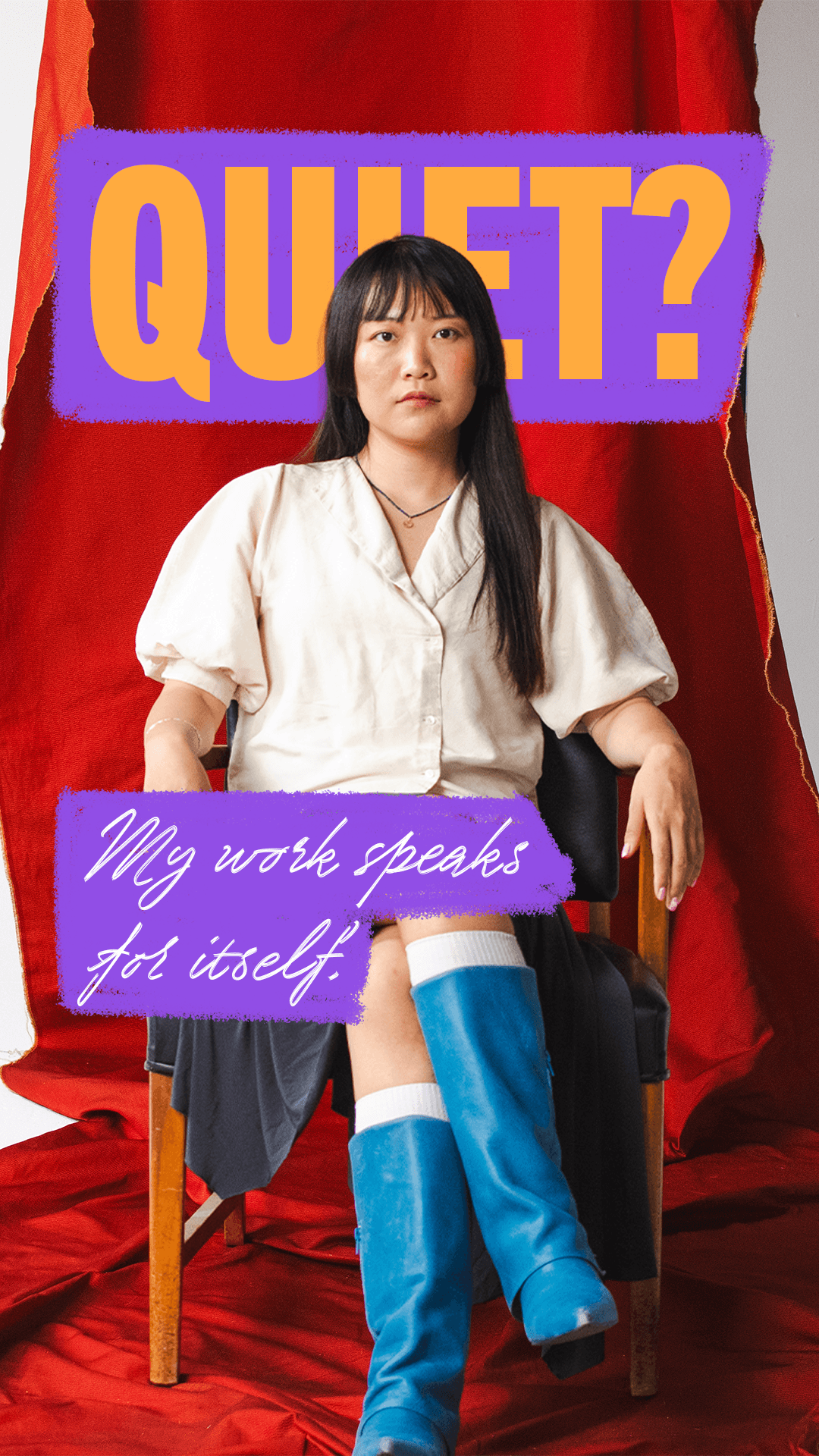 A bold sans serif took on the persona of the stereotypes, reflecting their rigid and imposing nature. A handwritten, playful script was chosen to add in the element of individual strength and personality each woman uses to flip the script. Colors are flashy, demanding attention in a world that would rather they be silent.