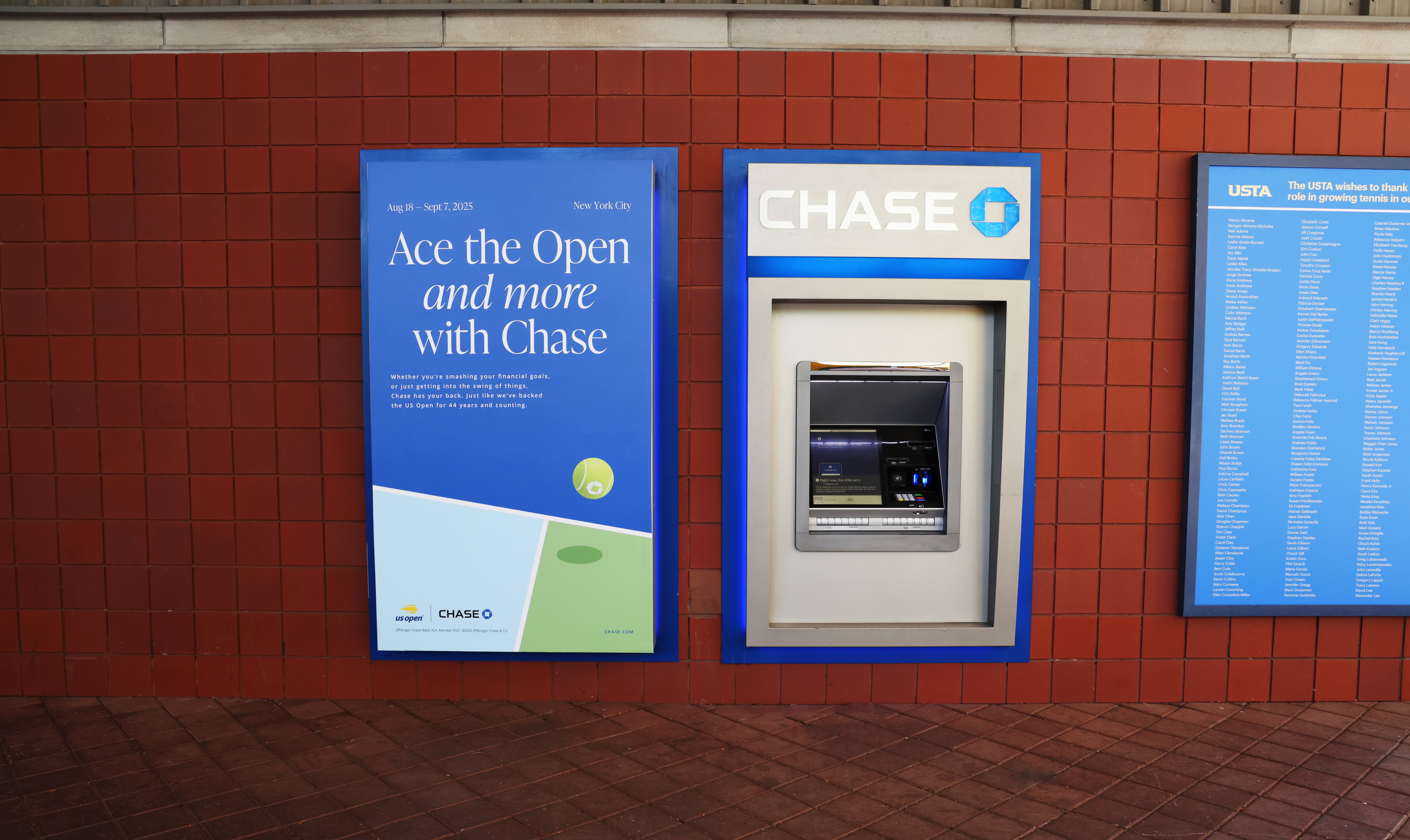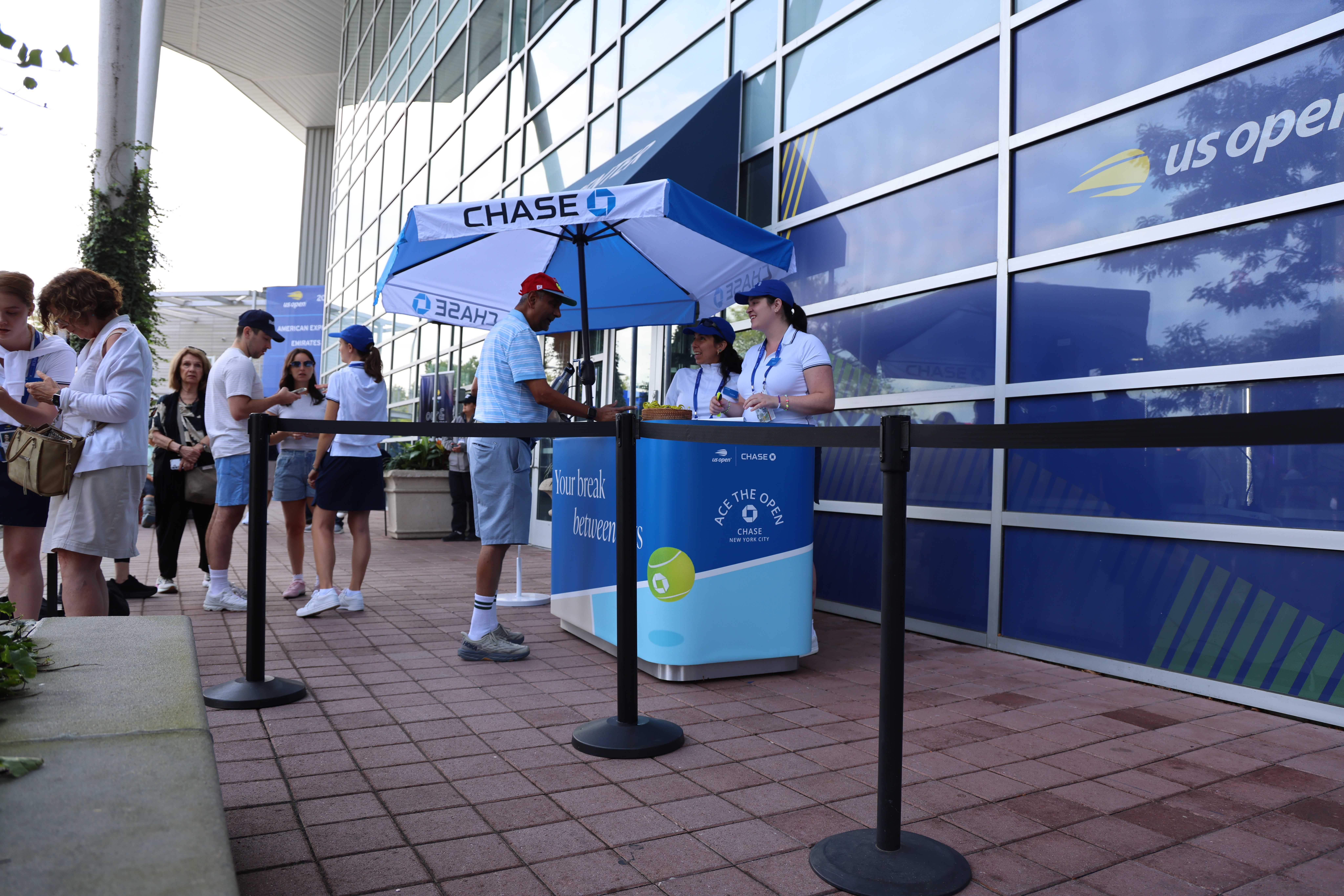 Frequent in-stadium ads between match points put Chase Bank and J.P. Morgan at the forefront for spectators, even calling out a historic 30 year support for the Women's Singles Championship.